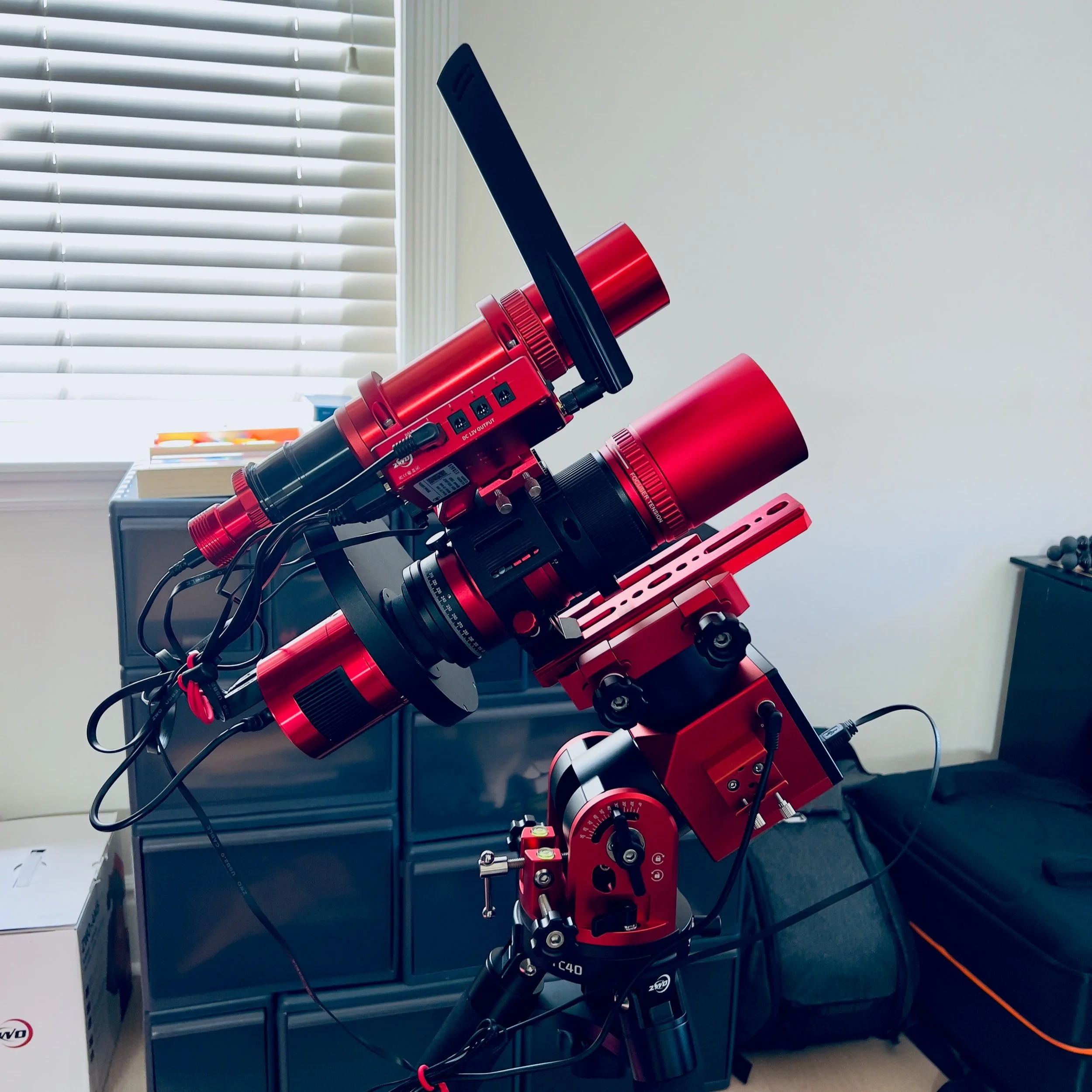 A decent mount. This is where you should not compromise on quality. It needs to be automated, and capable of bearing the weight of your equipment. The mount is what keeps the telescope and camera pointed to a single point in the sky. This is critical since the mount has to counteract the Earth’s rotation to keep the stars from trailing on the image. This requires a lot of technology, software and troubleshooting and is a subject in itself. I decided to go with the ZWO AM5 harmonic mount. It’s not the best in the world (those can cost upwards for $10k) but it gets the job done.